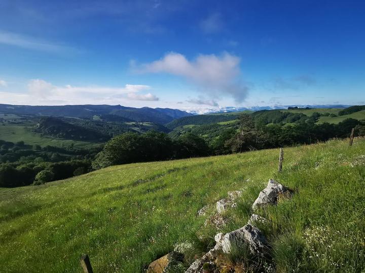 Après 1 km, superbe vue sur le village de Sainte-Eulalie. Puis, petite halte pour visiter la ferme de Bourlatier construite au XVIIème siècle. Vous vous dirigerez ensuite sur la bordure du plateau, avec une magnifique vue plongeante sur la vallée de la cascade du Ray Pic et le sud de l'Ardèche. Lachamp-Raphaël (1320 m) est le plus haut village d'Ardèche et le deuxième plus haut village du Massif Central. Avant Saint-Andéol-de-Fourchades, admirez le hameau typique de Pras avec ses maisons de pierre. Très belle église gothique dans le village de Saint-Andéol-de-Fourchades. Le lac de Saint-Martial est un cratère d'explosion de type phréatomagmatique récent (quelques centaines de milliers d'années) lié à la rencontre eau-magma. Baignade possible. Arrivée au Mont Gerbier de Jonc où une halte s'impose : sources de la Loire, produits locaux, ascension possible.