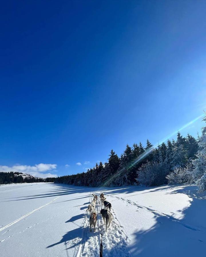 Assis dans le traîneau du musher venez découvrir la montagne Ardéchoise sous un beau manteau blanc.