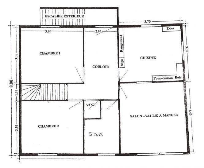 Cuisine toute équipée, séjour avec coin salon, salle de bains, wc, ch1(1 lit 2 pers), ch2(1 lit 2 pers, 2 lits 1 pers sup), chauff central, lit bébé et chaise haute, terrasse exposée sud ouest, lac d'Issarlès à 400m.