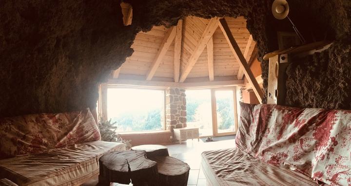 Accrochée à un rocher volcanique, la maison abrite une grotte confortablement aménagée, dans laquelle vous pourrez vous détendre et profiter d'une vue superbe sur les sucs, les vallées Ardéchoises et les Alpes ! A 8min de la station de ski des Estables (43- Haute-Loire). Situation Exceptionnelle !