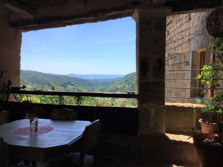 Nous voulions une maison très confortable. Toutes les pièces sont donc très spacieuses, 40 m2 pour la plupart, et lumineuses: pas moins de 26 fenêtres avec, pour beaucoup, des vues panoramiques magnifiques sur Faugères et la campagne environnante. Chaque fenêtre est un tableau!