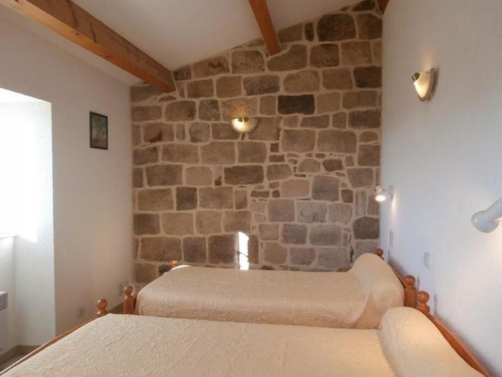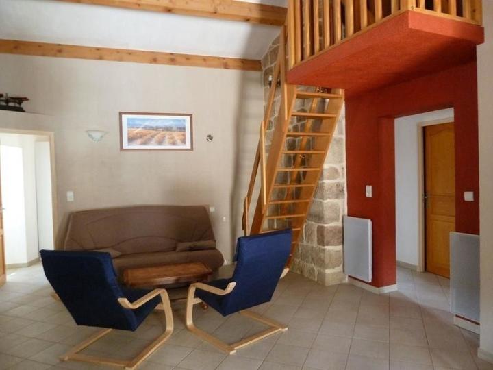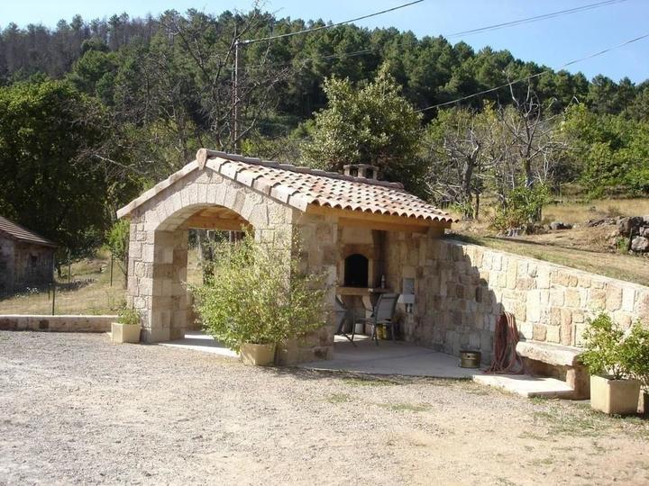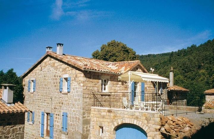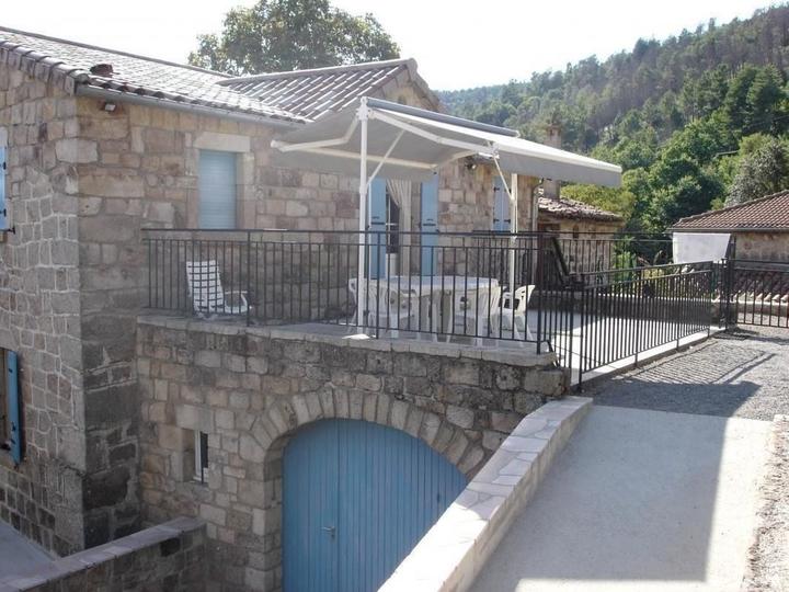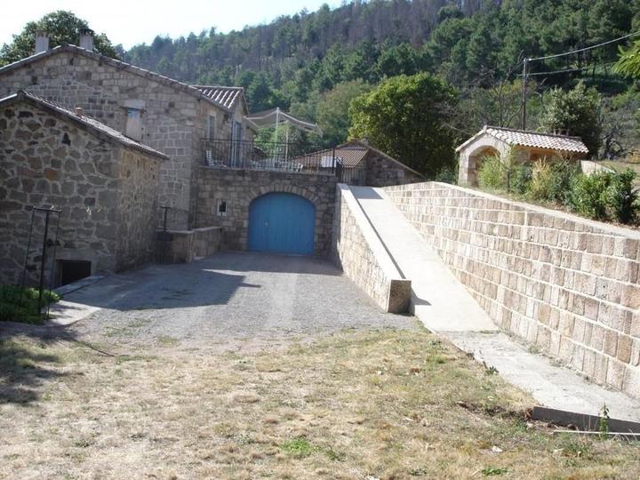 Séjour, coin cuisine intégrée, ch1(1 lit 2 pers.), ch2(2 lits 1 pers.), ch3(2 lits 1 pers.), salon avec cheminée, tél.(téléséjour), convert.2 pers., s.de bains, wc, ch.élect., grde terrasse fermée, terrain ombragé par les châtaigniers, garage. Chaise haute. Tous services à Joyeuse (très réputé pour son marché). La taxe de séjour est comprise dans le loyer. Bois gratuit pour la cheminée.