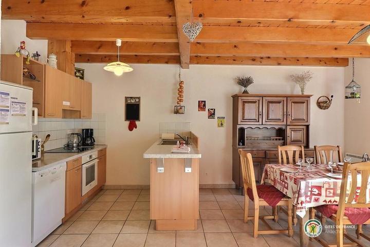 Gîte de plain-pied, d'un très bon confort, à l'aménagement soigné et réalisé avec beaucoup de goût. Séjour/c.cuisine intégré, coin-salon devant le joli poêle à bois vitré, 2 ch(4 lits 1 pers), 1ch(1 lit 2 pers), gde salle d'eau avec douche cabine et double vasque, wc indépendant, chauffage électrique, bois fourni. Terrasse de plain-pied, parking réservé. 2 maisons sont habitées au hameau, prairie à disposition. Proche de rivière. Possibilité de location de draps (7 et 9 € 1p, 2p).