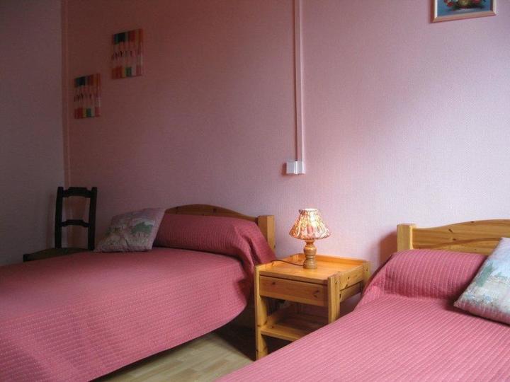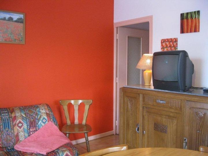 Séjour/coin-cuisine équipé, convertible 1 pers., ch1 (1 lit 2 pers), ch2 (2 lits 1 pers), lit bébé sur demande, salle d'eau, wc, chauffage central (forfait 60euro/semaine), terrasse commune séparée, terrain commun. Grands commerces à 15km.