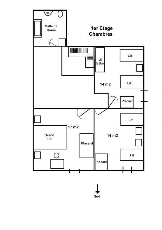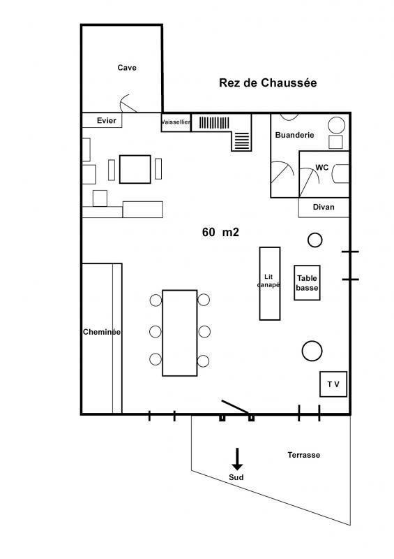 Maison indépendante sur 2 niveaux, avec terrasse de plain pied et grande prairie. Séjour, coin cuisine, coin salon (couchage 1 pers.), ch1 (1 lit 2 pers, 1 lit bébé), ch2(2 lits 1 pers), ch3(2 lits 1 pers), salle de bains, wc indépendant.