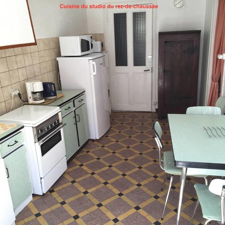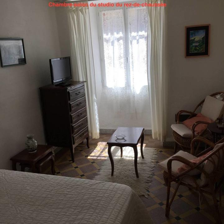 Gîte situé en rez de chaussée. Composé de 2 pièces : une chambre dans le salon et une cuisine séparée. Situé à 150m des Thermes. Exposition plein sud. Fenêtres à double vitrage avec volets métalliques.