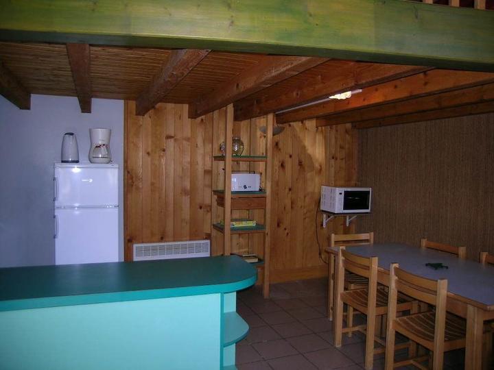 Séjour coin cuisine, chambre 1 (1 lit 2 pers.), chambre 2 (2 lits 1 pers. superposés), 1 convertible 2 pers, salle d'eau, wc, chauffage électrique, four à pizza et jardin communs, antenne satellite.