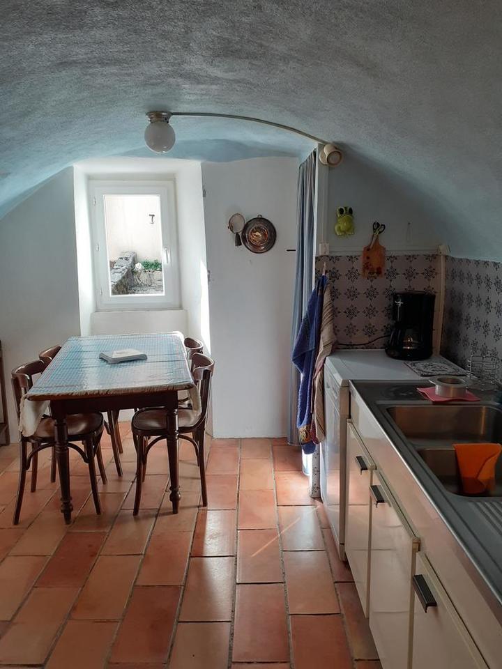 Meublé situé au 1er étage (en duplex) avec une terrasse extérieure. Dans le village de St Laurent les Bains, en bordure de rue. A 100 mètres des Thermes, en direction de La Bastide Puylaurent. Hall d'entrée commun (2 appartements).