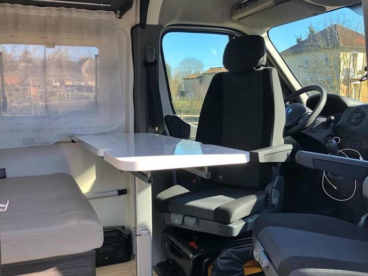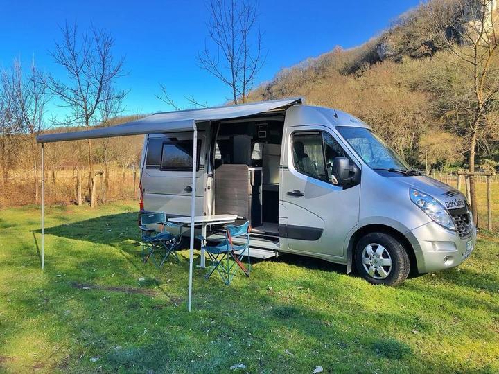 Nous louons notre fourgon aménagé FONT VENDOME MASTERVAN. Il est idéal pour deux adultes et un enfant.