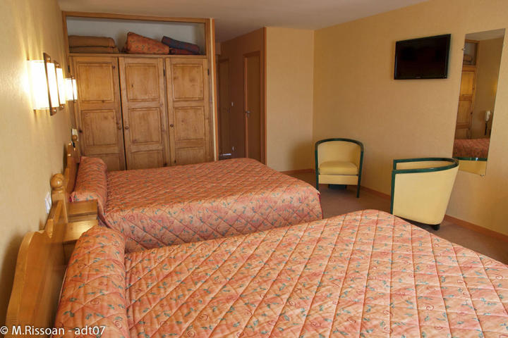 CHAMBRE STANDARD : 2 personnes, 12 m2. La chambre standard vous offre une vue ardéchoise imprenable. Elle met à votre disposition un téléphone et une télévision. La salle de bains bénéficie d'un sèche-cheveux et d'une baignoire. Les WC indépendants.