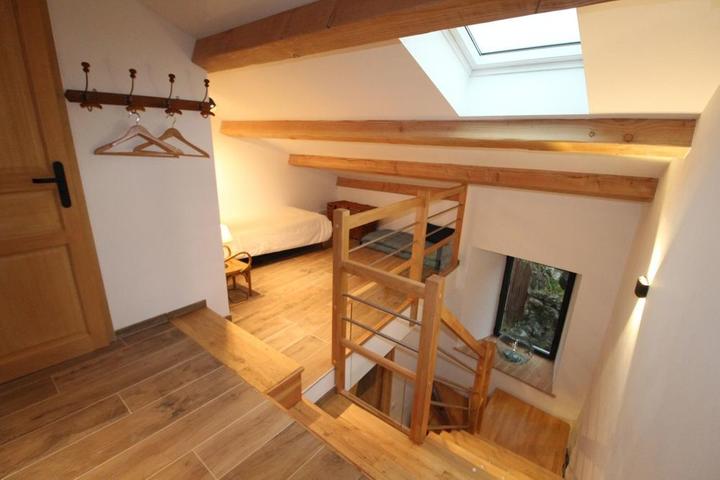 Nous sommes situés au cœur de la vallée de la Besorgues, entre montagne Ardéchoise et bassin d'Aubenas - station thermale de Vals les Bains (cinéma, thermes, soins, casino, piscine), cette vallée est réputée pour la pêche en rivière 1ère catégorie, le canyoning ou encore la randonnée. Notre gite douillet et très confortable est aménagé dans un petit hameau très calme, il bénéficie d'une belle terrasse ensoleillée avec salon de jardin et barbecue ainsi que d'un terrain à proximité immédiate. Au rdc, vous trouvez le séjour avec coin cuisine intégré entièrement équipé, le coin salon avec canapé, fauteuil, tv écran plat, connexion internet, poêle à granulés, wc indépendant avec buanderie et lave-linge. A l'étage, 1 chambre (2 lits 90x200 jumelables), 1 chambre ( 1 lit 160x200), un lit 90 en mezzanine, salle d'eau avec douche italienne grande dimension et double vasque, wc indépendant. Draps + Linge de maison et de toilette fournis, chauffage électrique et bois.