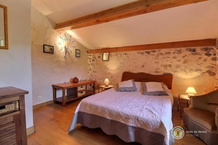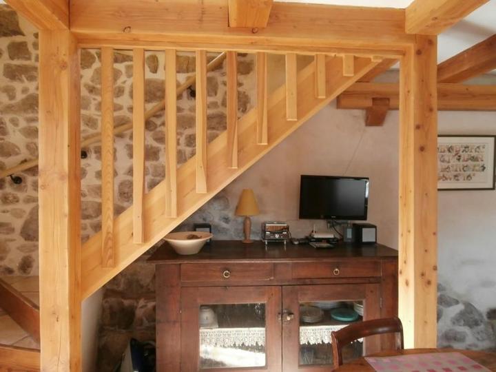 Sur 2 niveaux : séjour avec c.salon et c.cuisine tout équipé, 1ch (1 lit 2 pl), s.d'eau, wc. 40m² habillés de la chaleur du bois, des vieilles pierres et du confort du ch.central. Barbecue électrique. Un joli coin jardin en partie ombragé et clos vous est réservé. A 5 min de Thueyts où vous trouvez tous commerces et activités et à moins de 15min de la station thermale de Neyrac les Bains (thermes, piscine, cinéma). Forfait cure : 785€ hors juillet/août.