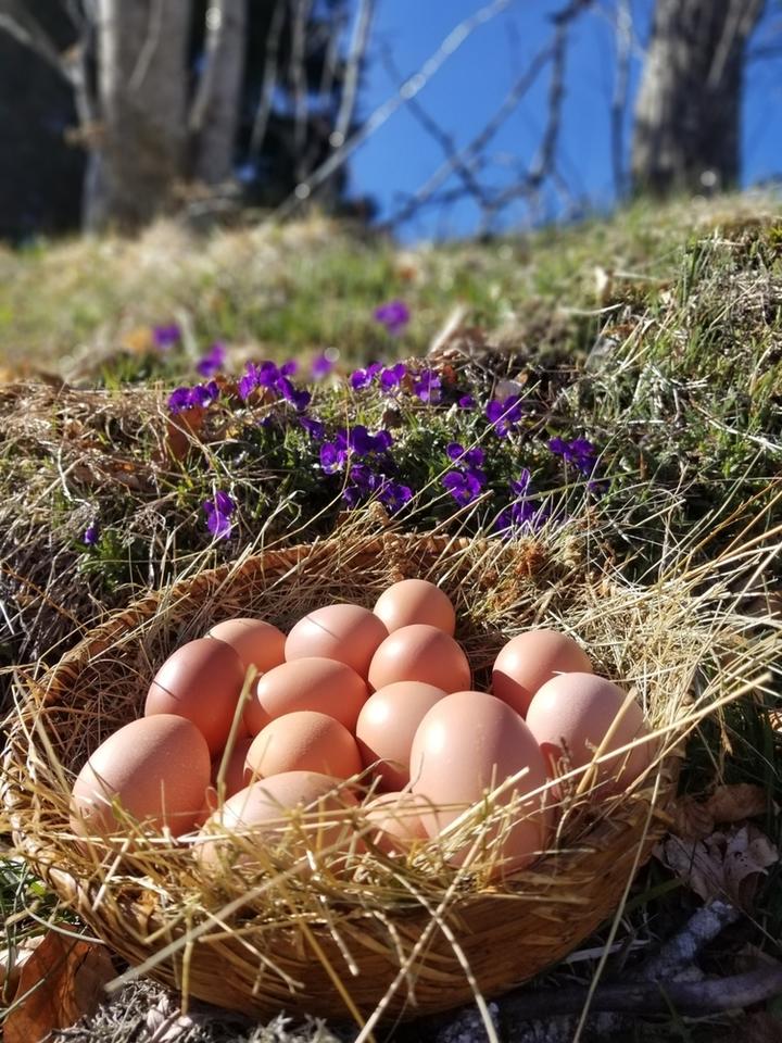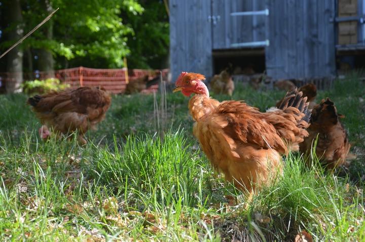 Julie élève des poules pondeuses et des poulets. Vente sur les marchés de ses produits : volailles entières et découpées, oeufs et légumes et petits fruits.