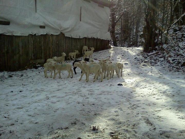 Nos brebis font un agnelage par an et certaines en font d'eux voire trois. Les petits restent deux mois avec leurs mères en bergerie et autour de la ferme. Ensuite, en avril, le troupeau entier monte dans les pentes.