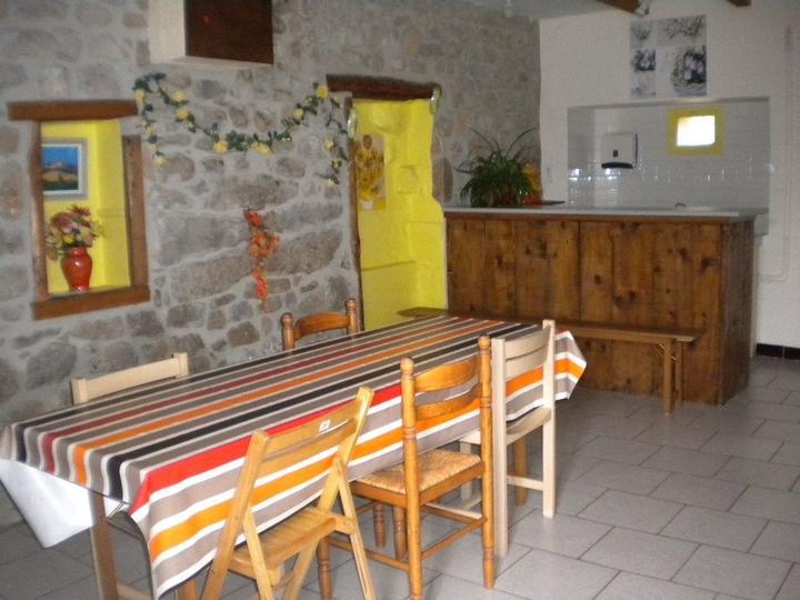 Maison aménagée sur 3 niveaux, avec cuisine équipée, salle à manger, salon avec 2 canapés, TV et jeux de société, 8 chambres de 2 et 3 pers (dont 3 avec 2 lits 90 superposés), 2 s.de bains, 1 s.d'eau, 3 wc, ch.central. Petit commerce multi-services au village. Tarifs modulables en fonction du nbre de pers. et de nuitées. Caution ménage 250 euros.