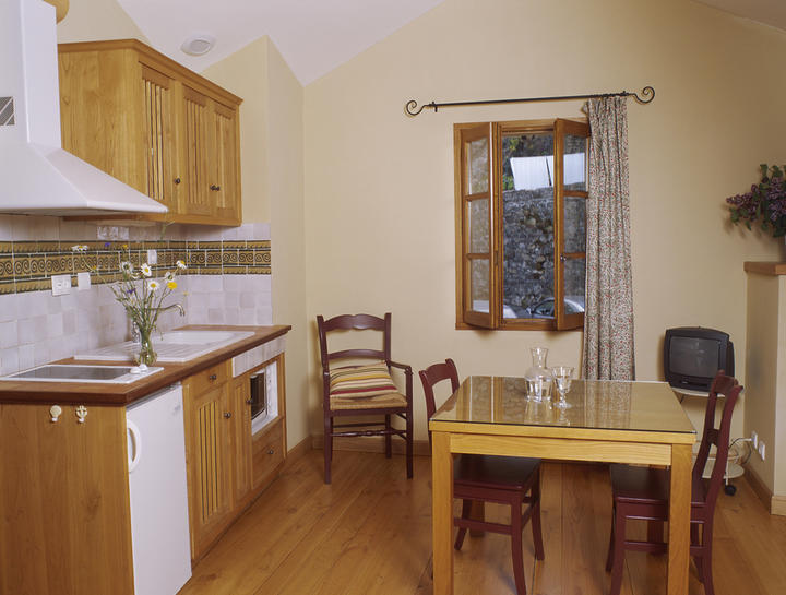 Pour 1 personne, logement donnant sur le cours d'eau ou le village. Studio de charme et de grand confort, composé d'un grand lit, d'une cuisinette toute équipée, de beaux meubles de châtaigniers en bois massif, d'une salle de bain avec douche "à l'italienne", d'un téléphone direct et d'un écran plat 108 cm avec Canal+.