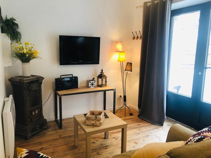 Au cœur du village thermal, bel appartement meublé pour 4 pers. Pour une cure ou pour des vacances. Logement spacieux et lumineux, entièrement équipé pour les longs séjours (écran plat, lave linge, fer à repasser, sèche cheveux, douche à l'italienne…)