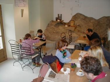 Un salon de thé où l'on peut se rafraîchir ou se réchauffer selon la saison, composer son casse-croûte avec les produits de la boutique, déguster de délicieuses glaces artisanales …et savourer la douce quiétude de Thines et son superbe paysage.