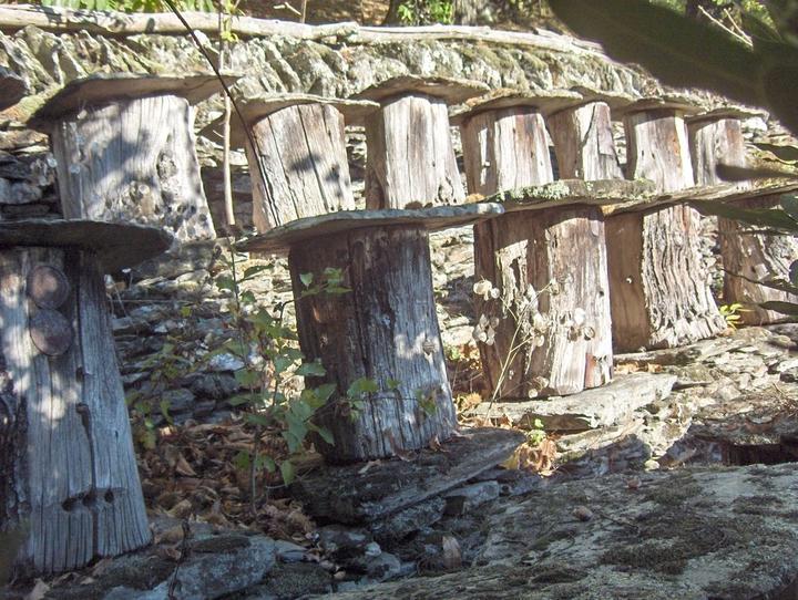 Ruchers authentiques désaffectés avec des ruches troncs non habitées.