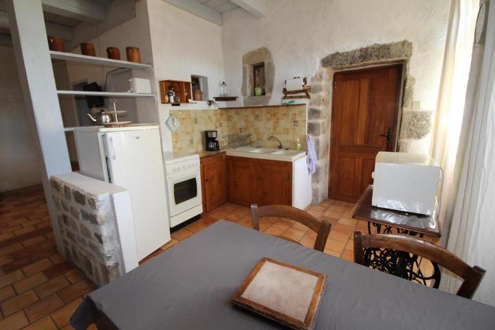 Gîte à l'étage avec séjour, coin-cuisine, ch1(2 lits 1 pers), ch2(1 lit 2 pers), salle d'eau, wc, chauffage électrique. Terrasse couverte attenante avec ping pong, cour close, terrain commun. Vous trouverez tous services à Largentière. Jolies baignades en rivières à 15mn, nombreuses balades à pied.