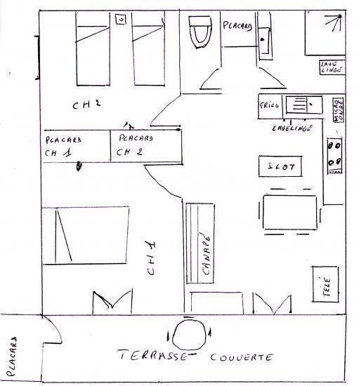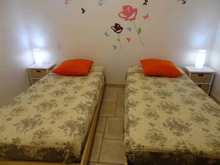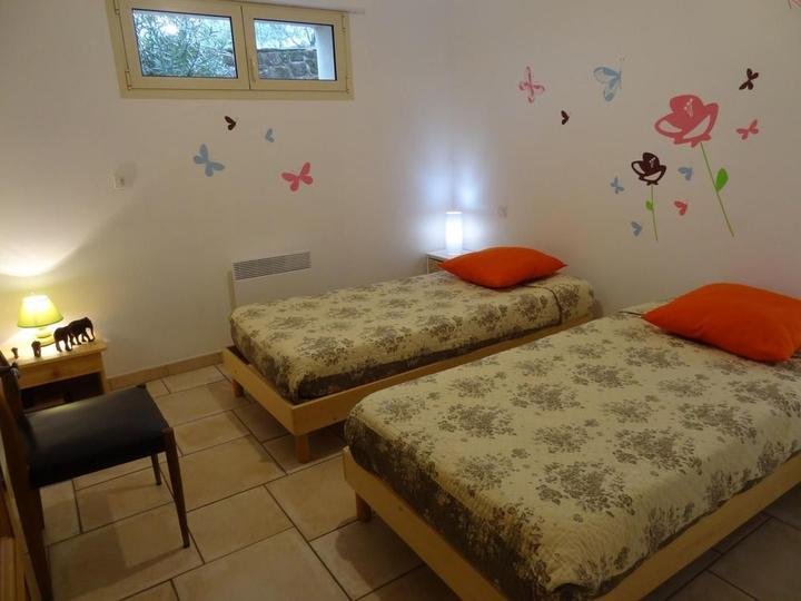Séjour, coin salon, coin cuisine intégré, 1ch(1 lit 2 pers), 1ch(2 lit 1 pers), salle d'eau (cabine douche à l'italienne), wc indép, chauff électr, terrasse couverte, salon de jardin, table de ping pong, jeux de boules. Environnement très calme. Randonnées et nombreuses balades au départ du gîte. Piscine couverte à 6 km.