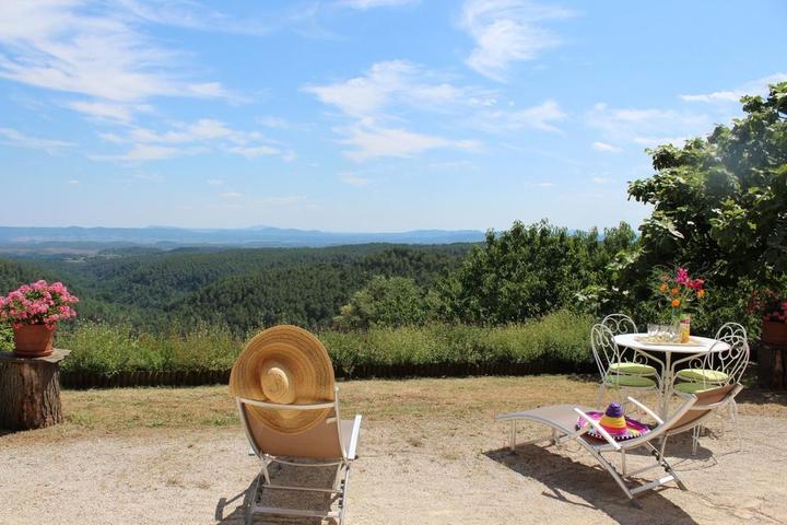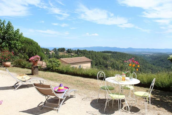 Maison indépendante bénéficiant d'une superbe vue panoramique sur la Cévenne et sur la plaine de la basse Ardèche. Le gîte est aménagé au rdc de la maison du propr, accès décalé, terrasse couverte (pas de vis à vis). Jolie terrain devant le gîte.