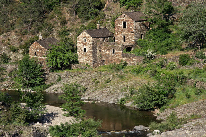 Schiste, granit ou grès au village de Ribes se retrouvent dans toutes les constructions, jusque dans les toitures en lauzes de schiste.