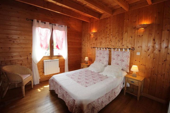 Séjour avec coin salon et coin cuisine intégré, 1 ch au r.d.c (1 lit 2 pers), 1 mezzanine avec 1 lit 2 pers., 1 lit 1 pers., convertible 2 pers, s.d'eau avec grande douche cabine, wc, cellier avec lave-linge et sèche-linge, chauffage électrique et poêle cheminée (bois fournis le weekend/ 40€ la semaine), grande terrasse ensoleillée, garage, cave, grand terrain.