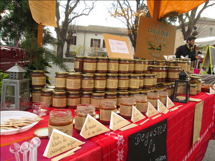Installé comme agriculteur en Ardèche depuis le printemps 2015, je propose une gamme variée de produits de la châtaigne. Différentes recettes à base de crème de châtaigne, des purées et châtaignes au naturel, mais aussi des terrines végétariennes à base de purée de châtaigne, aliment très complet riche en oligo éléments et vitamines.