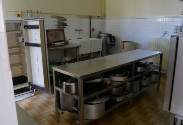 A disposition : Deux salles communes, une cuisine professionnelle et une salle de gym.