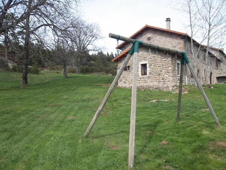 La Grange : séjour, coin cuisine, 4 chambres (2 lits 2 pers., 4 lits 1 pers.) toutes avec salle d'eau et wc, TV, coin-salon, terrasse plein sud, chauffage central, terrain avec jeux d'enfants commun aux 2 gîtes. Bâtisse en pierre au sein d'une propriété de 30ha dans un cadre exceptionnel, baignade aux lacs, circuits VTT, pêche, rando. Gîte à l'étage de la ferme, entrée et terrasse en rdc, (mitoyen à la résidence du propriétaire).