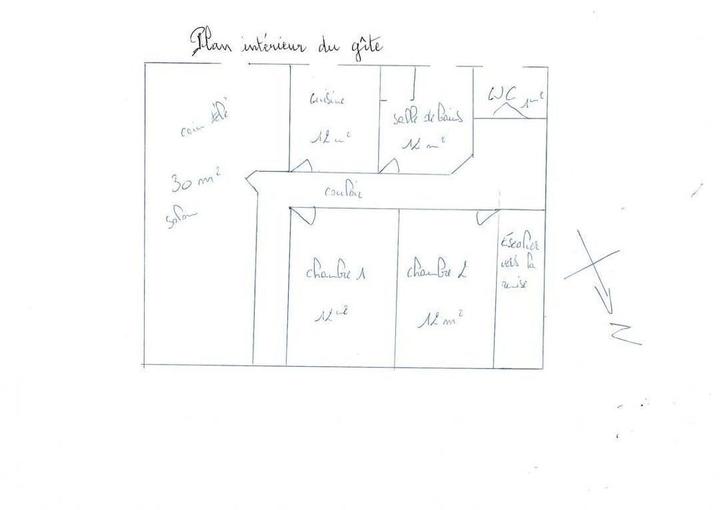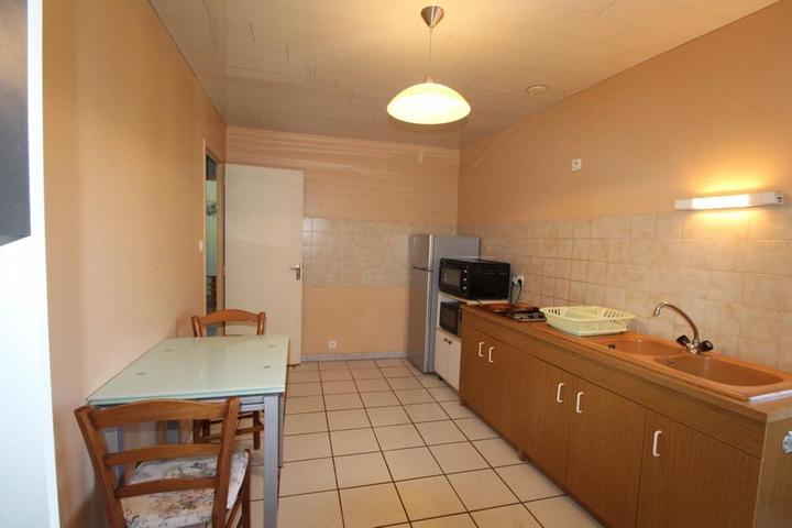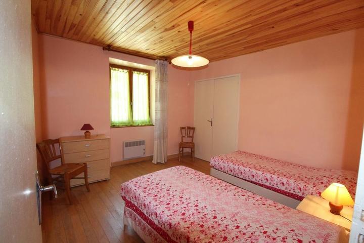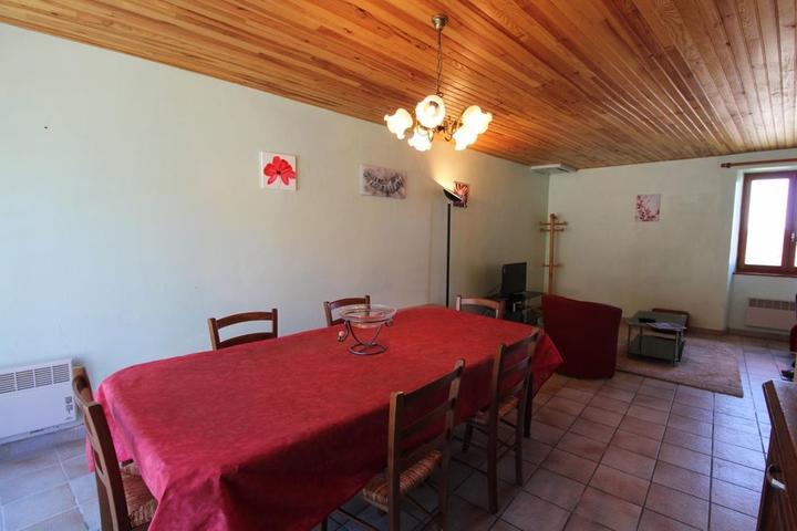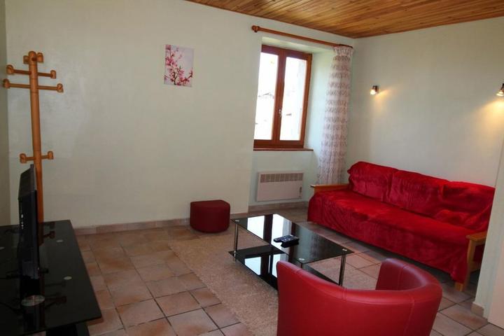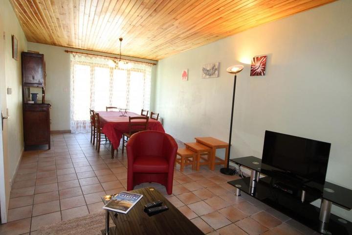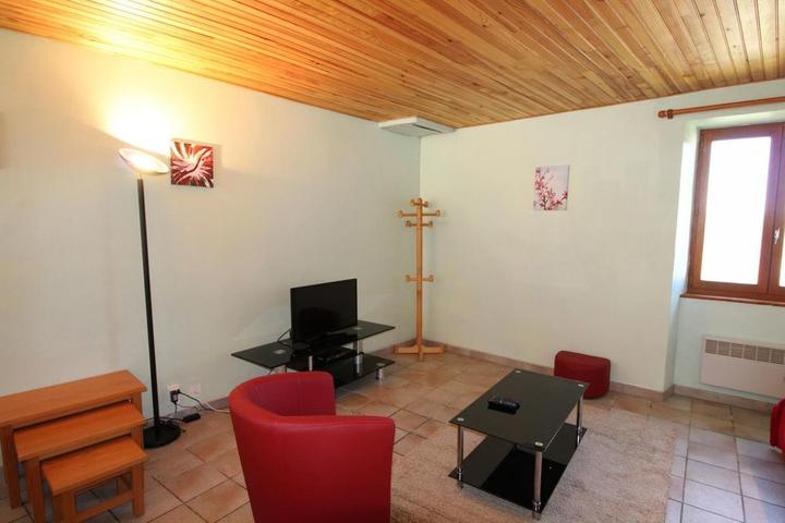 Cuisine, séjour avec coin-salon (canapé, TV écran plat), 1 chambre (1 lit 140), 1 chambre (2 lits 90), salle d'eau, WC indépendant, chauffage électrique, petit jardin clos situé en contre bas.