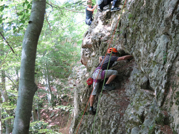 Escalade : Après une petite marche en sous-bois, vous arriverez au pied d'un pan rocheux équipé de différentes voies à l'assaut desquelles vous pourrez vous lancez.