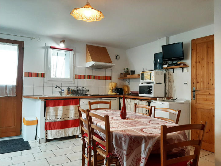Pièce à vivre (séjour-cuisine) : hotte aspirante, table de cuisson (2 foyers à induction), mini-four, micro-ondes-grill, réfrigérateur (table top), lave-vaisselle, cafetière, bouilloire, grille-pain, ... , canapé-convertible (1 à 2 pers.), TV à écran plat, WIFI (connexion gratuite et sécurisée), ...