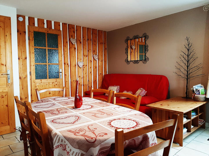 A 100 m des pistes de ski alpin et bien exposé dans le haut du village, charmant gîte de très bon confort et de plain-pied avec terrasse privative de 21 m2.