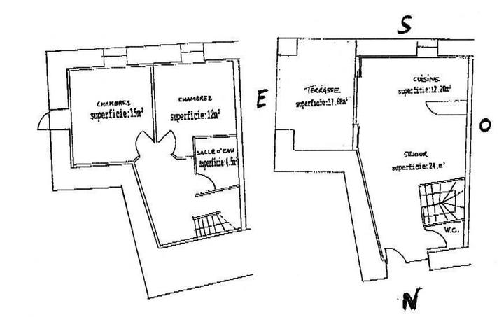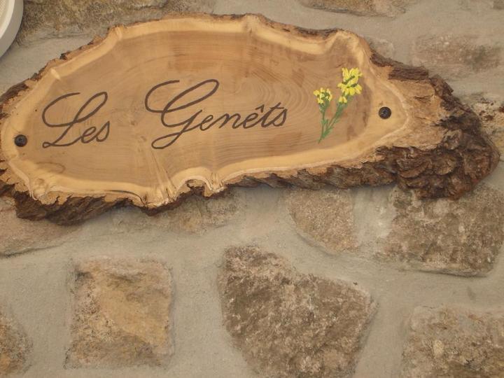 Chaque gîte a son entrée et sa terrasse privée. Les Genêts : Séjour, c.cuisine équipée, ch1(1 lit 2 pers), ch2(4 lits 1 pers sup), convert 2 pers, salle d'eau, wc, chauf. électr.