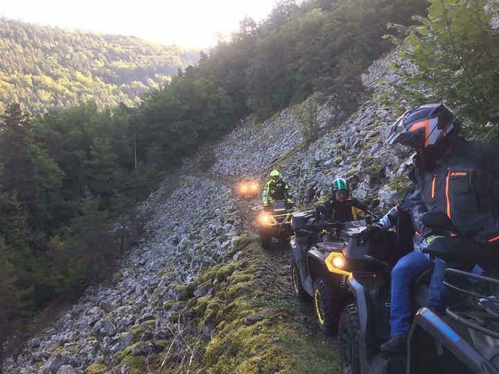 Randonnée Extrême : Prévoir une journée avec briefing, équipements, cours de pilotage d'un quad sur terrain privé, repas du midi dans un restaurant (à votre charge). Randonnée en quad 6.30h