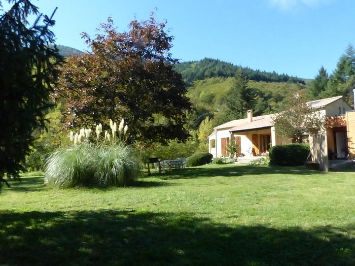 Gîte situé à proximité de la maison du propriétaire et d'un autre gîte sur un grand terrain arboré bordé par la rivière La Beaume. Hébergement labellisé Pêche.