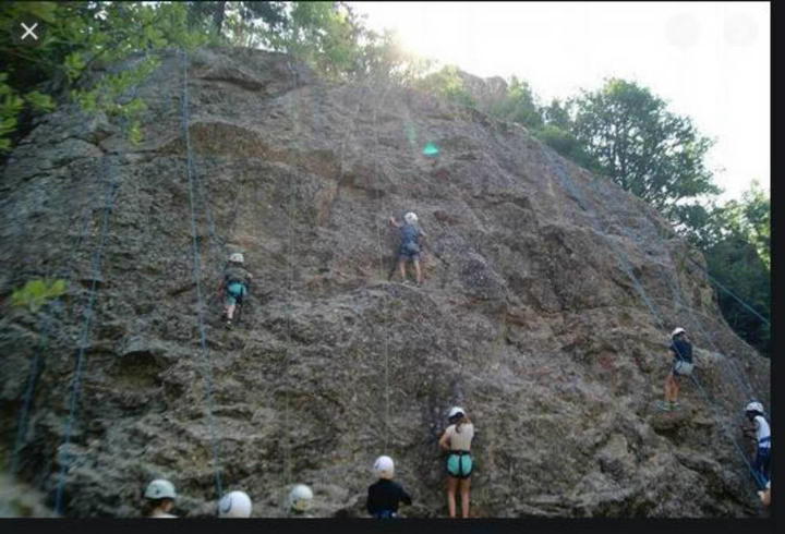 Nous avons également, sur la ferme du Pradel, un mur d'escalade où les plus jeunes pourront apprendre les techniques de sécurité et le maniement des cordes.