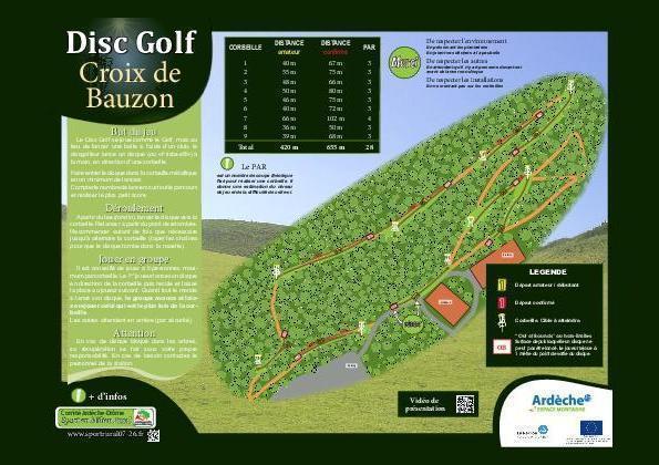 Le disc golf est une activité ludique et familiale. Le discgolfeur lance un disque (frisbee) à la main en direction d'une corbeille. Le but ? Faire rentrer le disque dans la corbeille en un minimum de lancers. Parcours de 7 paniers sous les arbres.