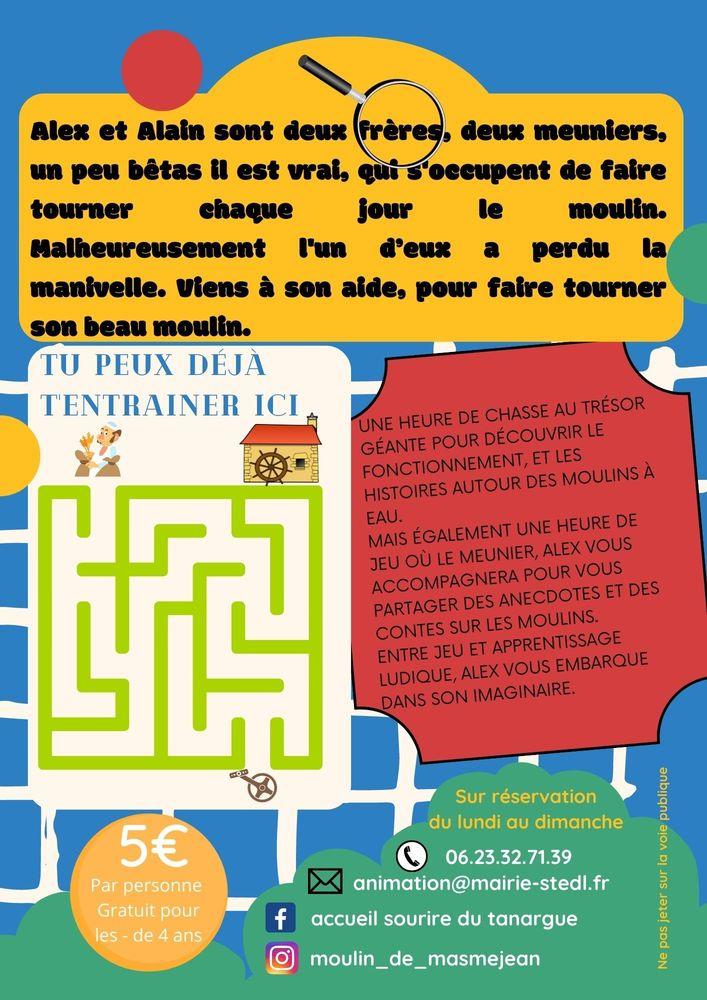 Une heure de chasse au trésor géante (sur réservation) pour découvrir le fonctionnement et les histoires autour des moulins à eau. Mais également une heure de jeu où le meunier vous accompagnera pour vous partager des anecdotes et des contes sur les moulins.