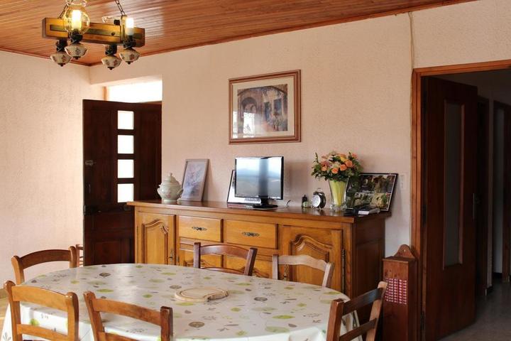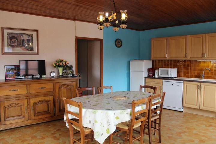 Gîte in little hamlet 5km from spa town of St-Laurent-les-Bains. Wonderful view of the Cévennes and Tanargue. Gîte: living room, kitchen area (freezer), bedroom (double bed, single bed), double sofa bed, bathroom, WC. Central heating. Telephone, TV, washing machine. Little terrace.