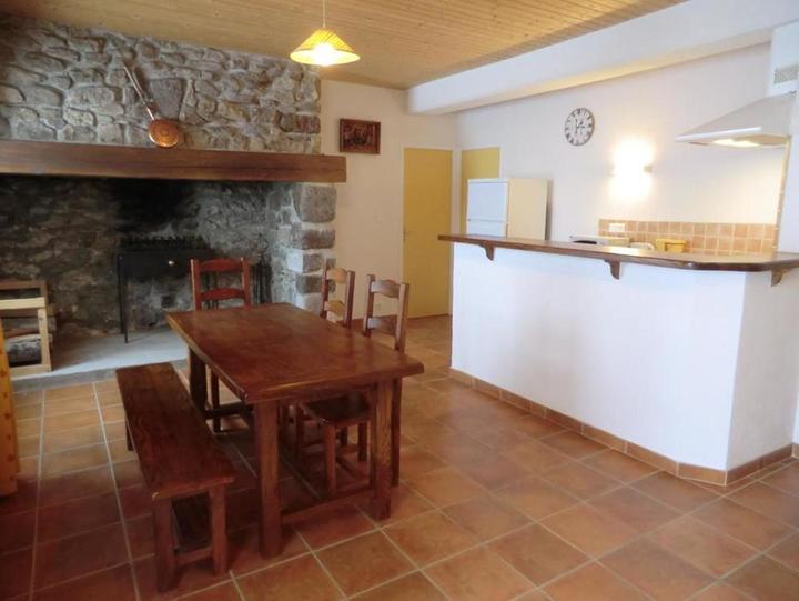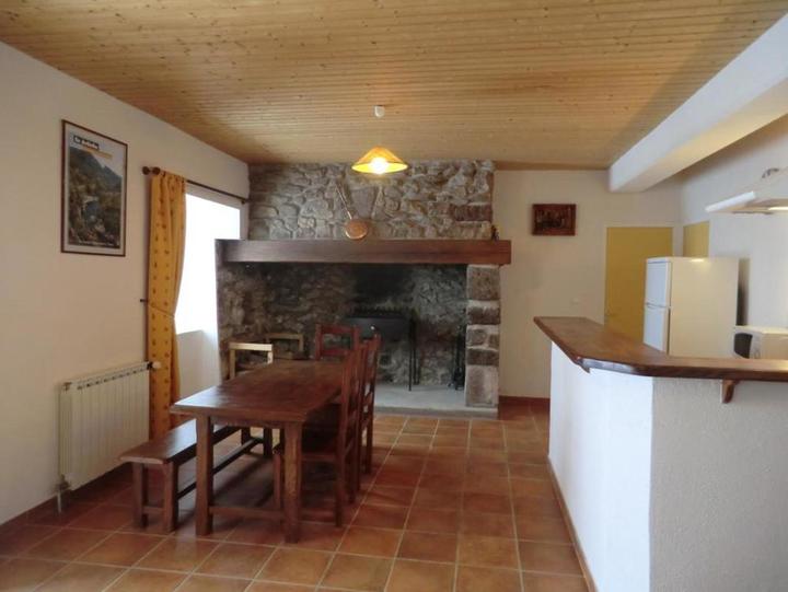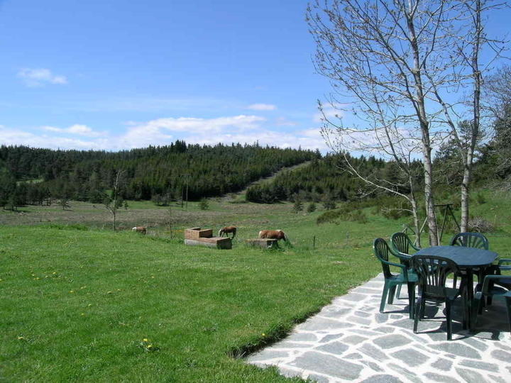 L'Oustal : Séjour, coin cuisine, 1 chambre (1 lit 2 pers) avec salle d'eau wc, 1 petite chambre (1 lit 2 pers) avec salle d'eau. Coin-salon (convert.2 pers), wc, cheminée ardéchoise, terrasse, terrain attenant plein sud, chauffage central, terrain avec jeux d'enfants commun aux gîtes. Propriété de 30ha, dans une nature préservée (pâturages, ruisseaux, bois de pins et d'épicéas). Gîte en rdc, mitoyen à la maison du propriétaire.