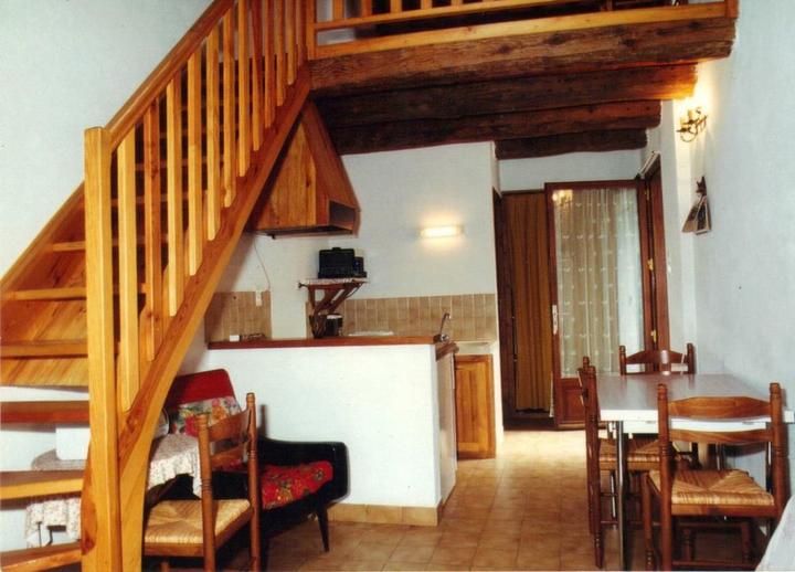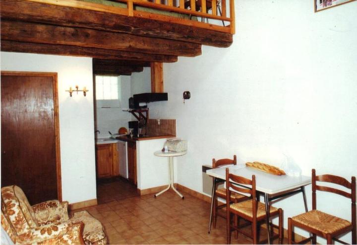 Gîte situé dans le village, à 350 mètres des Thermes. Composition : une pièce à vivre avec coin cuisine (30 m2), une salle d'eau (douche), un WC, une chambre en mezzanine (15 m2) et une petite terrasse et lave linge communs.