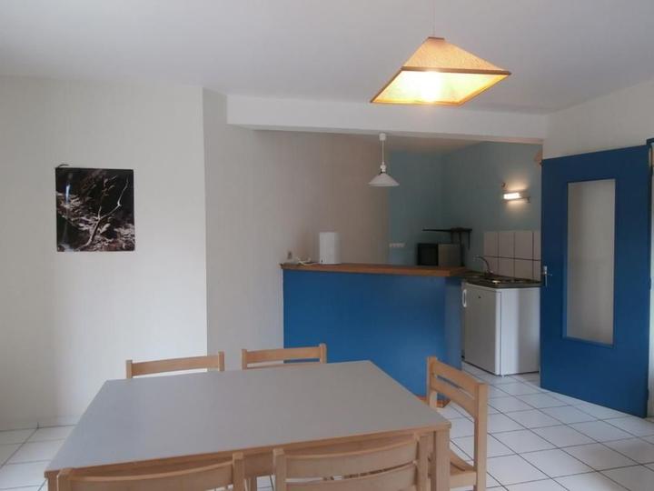 House adjoining other buildings, comprising 5 gîtes. Shared unfenced garden. 1st gîte (ground floor): living room, kitchen area, bedroom (single bed, 2 single bunks), double sofa bed, shower room, WC. TV point. Electric heating. Play area for children. Manned telephone at the Mairie on Tuesday and Saturday. Large shops 25km. 2 picnic tables shared by the 5 gîtes.