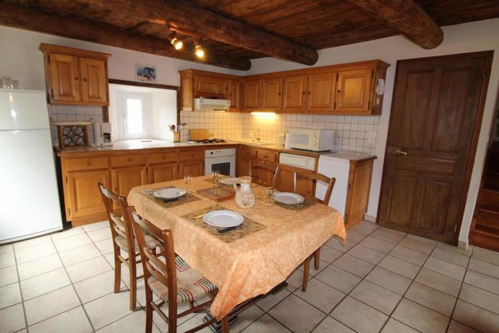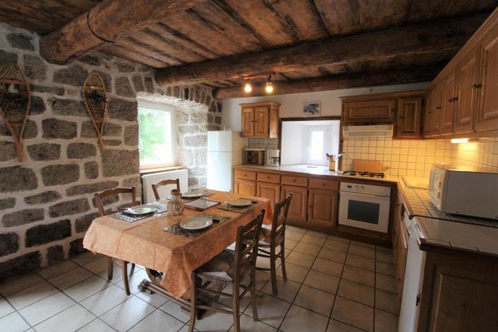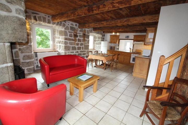 Cuisine intégrée équipée, séjour, salon, 2 chambres communicantes : ch1 (1 lit 2 pers en 160), ch2 (2 lits 1 pers, 1 lit d'appoint 1 pers). Salle d'eau, wc, petite terrasse, jardin clos et fleuri, chauffage central(forfait 70 euro/semaine), lit bébé. Un seul animal est accepté. Nombreux circuits VTT, randos.