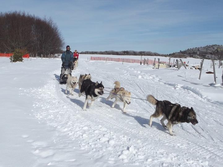 On the Ardéchois plateau, in the beautiful setting of the Gerbier de Jonc, come discover the world of sled dogs. On the same principle as cani-snowshoeing, but with cross-country skiis on your feet with or without a pulk.