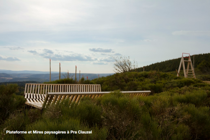 Chaque site accueillant un mobilier propose un point de vue exceptionnel sur le paysage, changeant au rythme des saisons. Du nord au sud, on les retrouve au Mont Mézenc (abri-point de vue à la Croix de Peccata ; plateforme à la Croix de Boutières), à la Chartreuse de Bonnefoy, au pied du Mont Gerbier-de-Jonc (plateforme au départ du chemin d'ascension et Banc près de la source véritable de la Loire),…