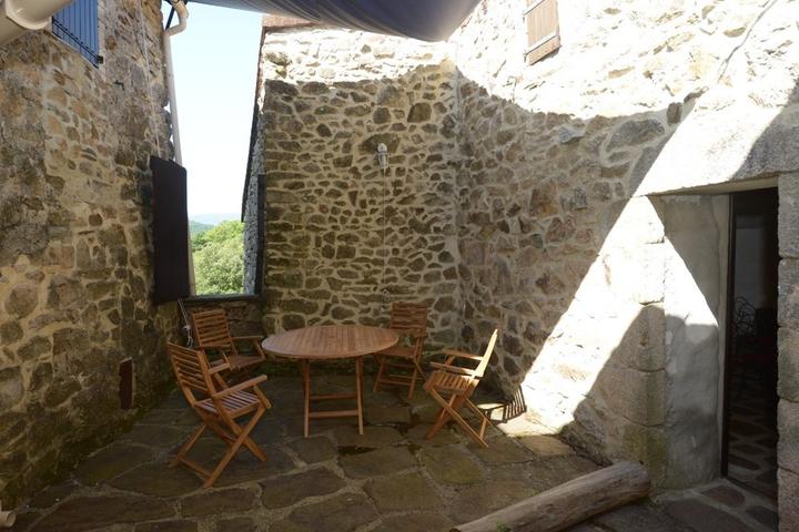 coeur des monts d'Ardèche . Cuisine extérieure équipée , plan d'eau naturel , salle d'activités , terrasses privées ombragées .