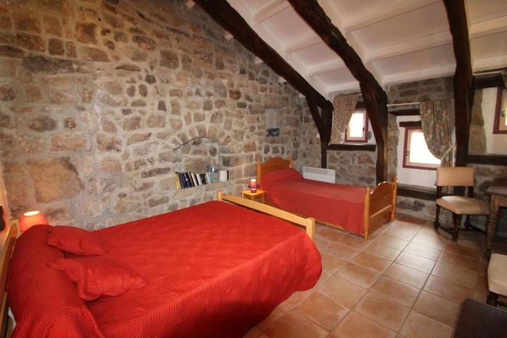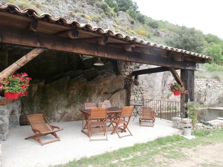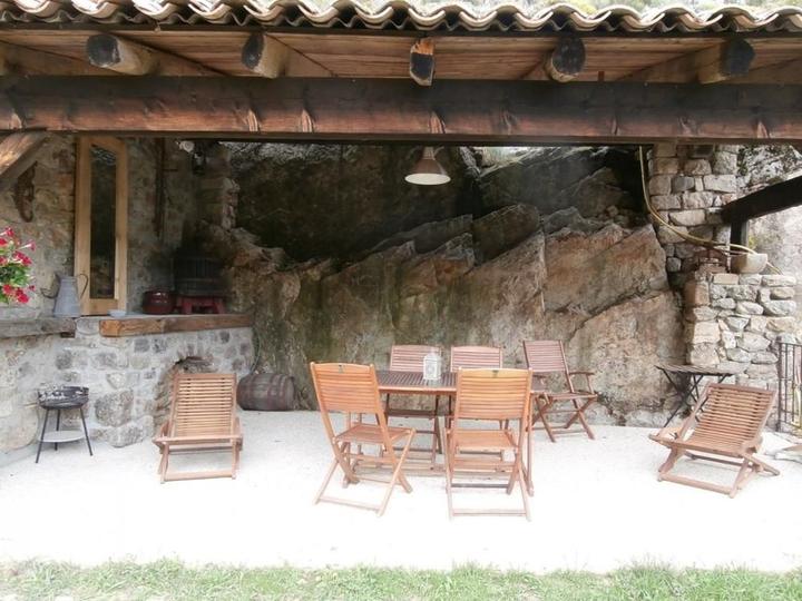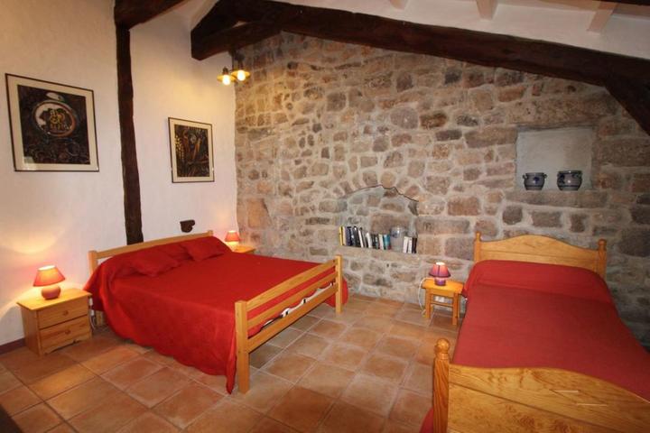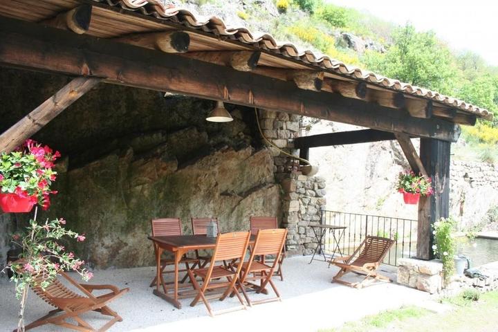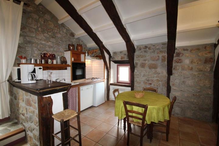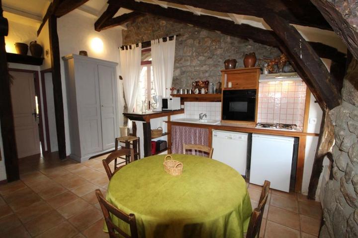 Character gîte in typical Ardèche hamlet in unspoilt countryside setting, 3km from village. Cosy, tasteful décor. Separate entrance and lovely outdoor area with clear views over valley. Kitchen, lounge (double sofa bed, games), bedroom (double bed, single bed, dressing room), shower room, WC. Electric heating. All baby equipment. Garden furniture under arbour. 3km from Burzet (famous for the Monte Carlo Rally) with all shops/services. House contains owner's home and 2 gîtes.
